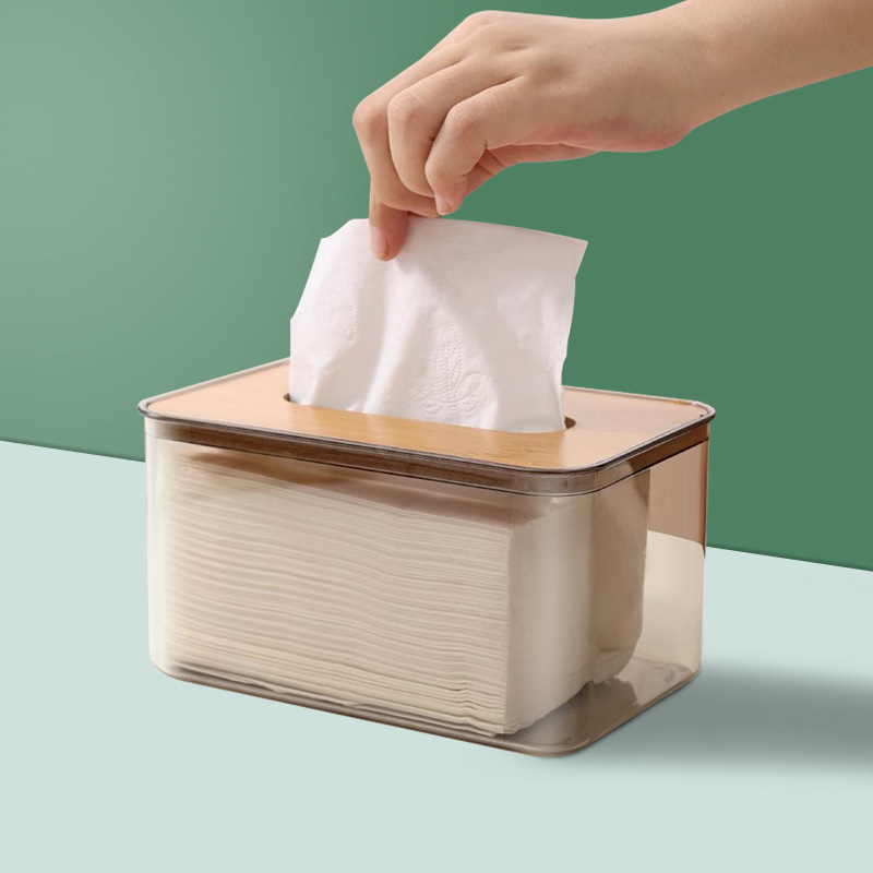 リビング家庭用ティッシュボックス茶卓長方形シンプルナプキン箱透明プラスチック木蓋引き出し箱