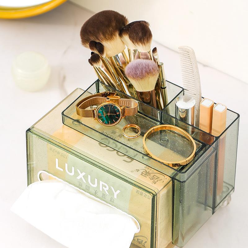 家庭用リビングルームの引き出し箱のお茶のいくつかの豪華な多機能のリモコンはティッシュの箱の化粧品の筆筒の置物の棚を収納します。