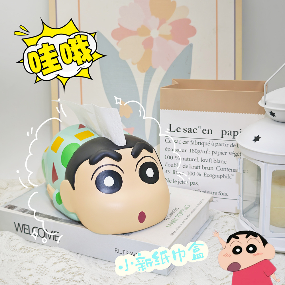 クレヨンしんちゃん漫画しんちゃんティッシュボックスリビングルーム家庭用デスクトップ玄関ティッシュボックス置物リビングルーム装飾ギフト