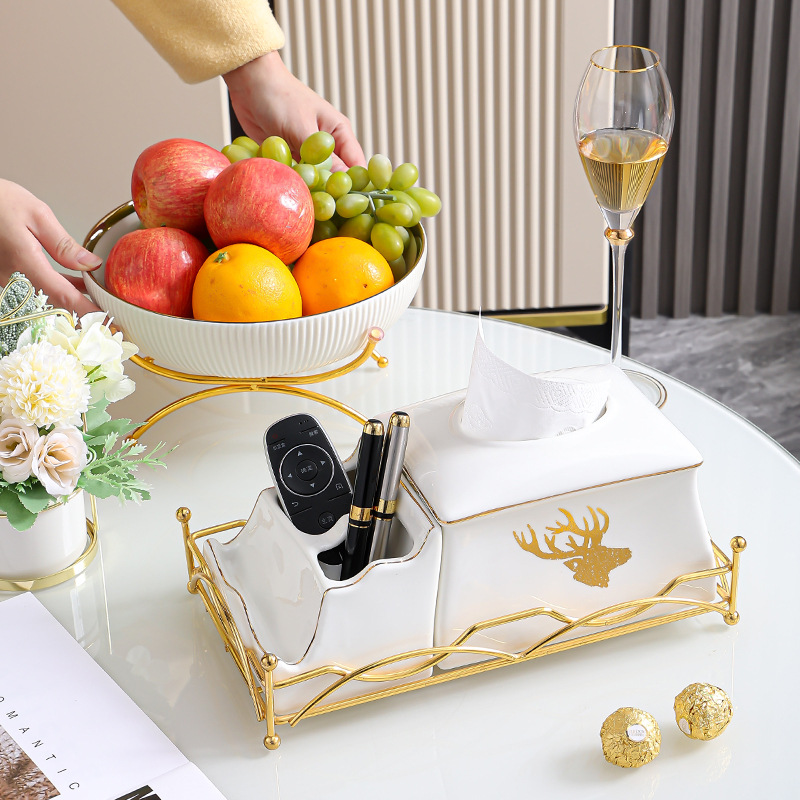 クリエイティブネットの赤いデスクトップは紙の筆筒のティッシュの箱を引き出してリモコンの一体の多機能の客間の高級な贅沢な陶磁器を置きます。