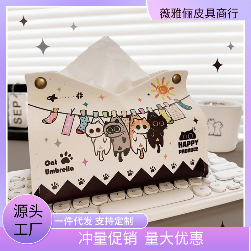 テン億オリジナルかわいいアニメ家庭用引き出し箱INS風皮質ティッシュ収納バッグ車載ティッシュケース卸売り