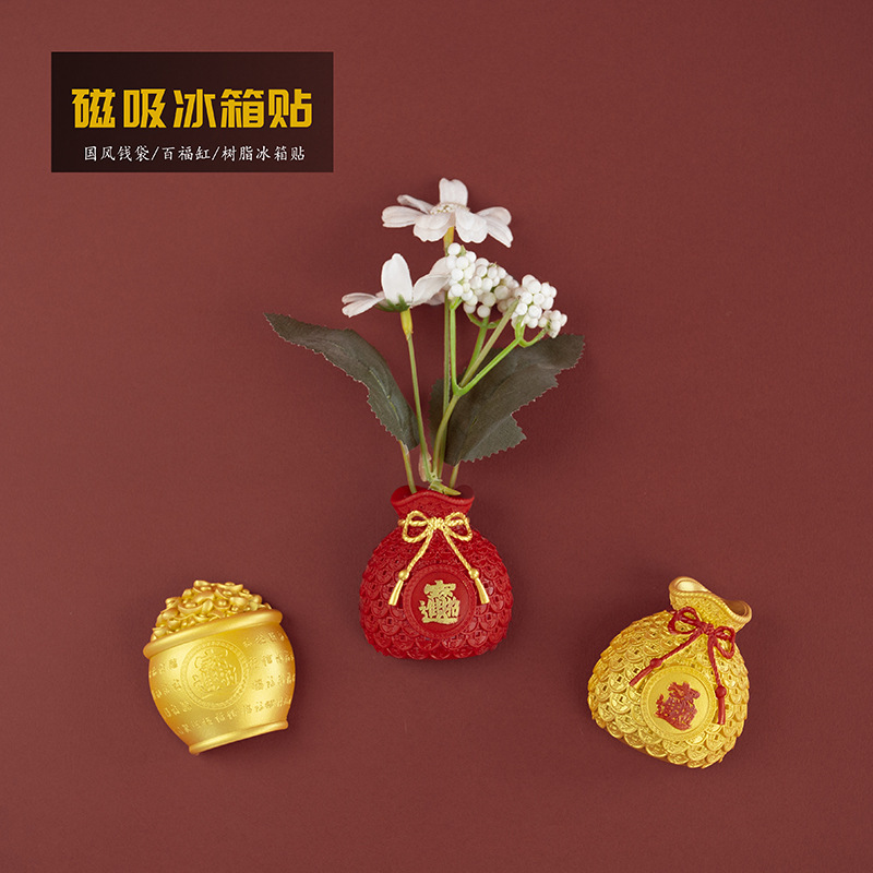 新しいクリエイティブ平和祝福バッグ樹脂冷蔵庫マグネット縁起の良い幸運マネーバッグ百福タンク新年のお祝い新築祝いギフト