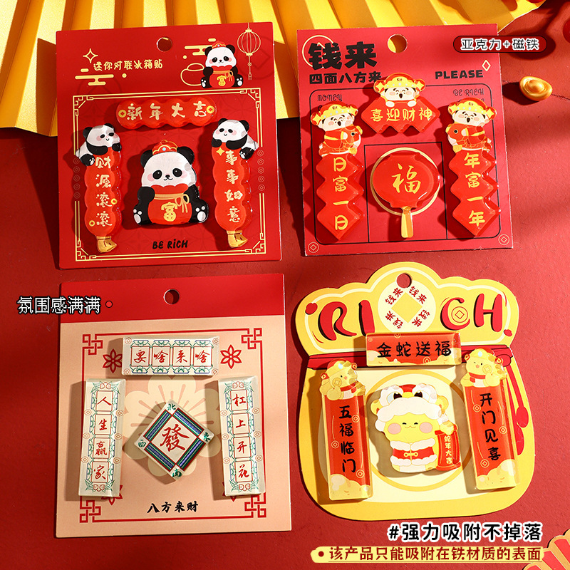 漫画新年ミニ対聯冷蔵庫貼り国風創意文創磁石冷蔵庫貼り正月装飾趣味春聯