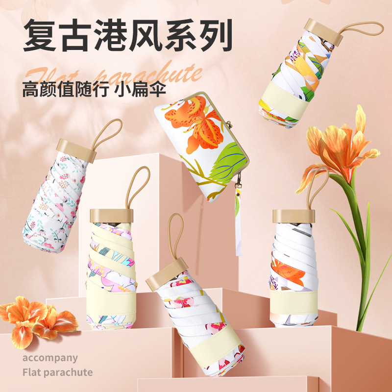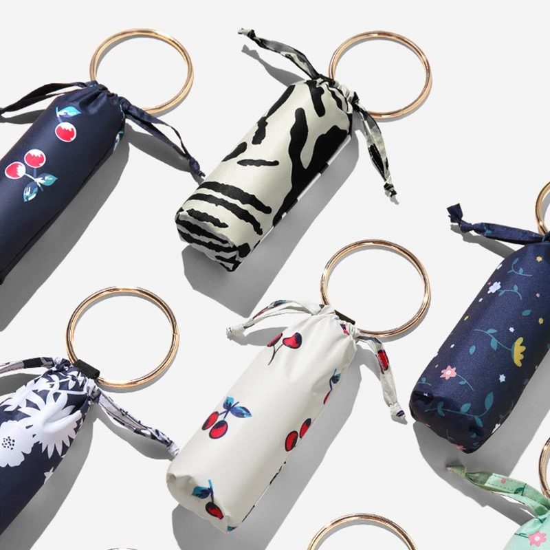 新商品のハンドリングバッグ晴雨両用折りたたみ日傘携帯用黒ゴム日焼け止め傘ポケット五つ折り晴雨傘