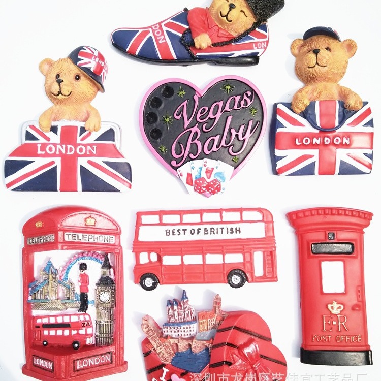英国の樹脂製冷蔵庫マグネット、ロンドンのクマ、電話ボックス、郵便ポスト、バスの装飾マグネット、国境を越えた旅行のお土産