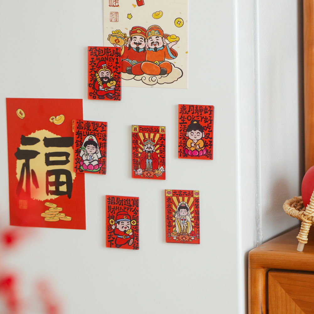 2025新型アクリル冷蔵庫は旧正月の門福字シールを貼って、自分で装飾用品を貼り付けます。