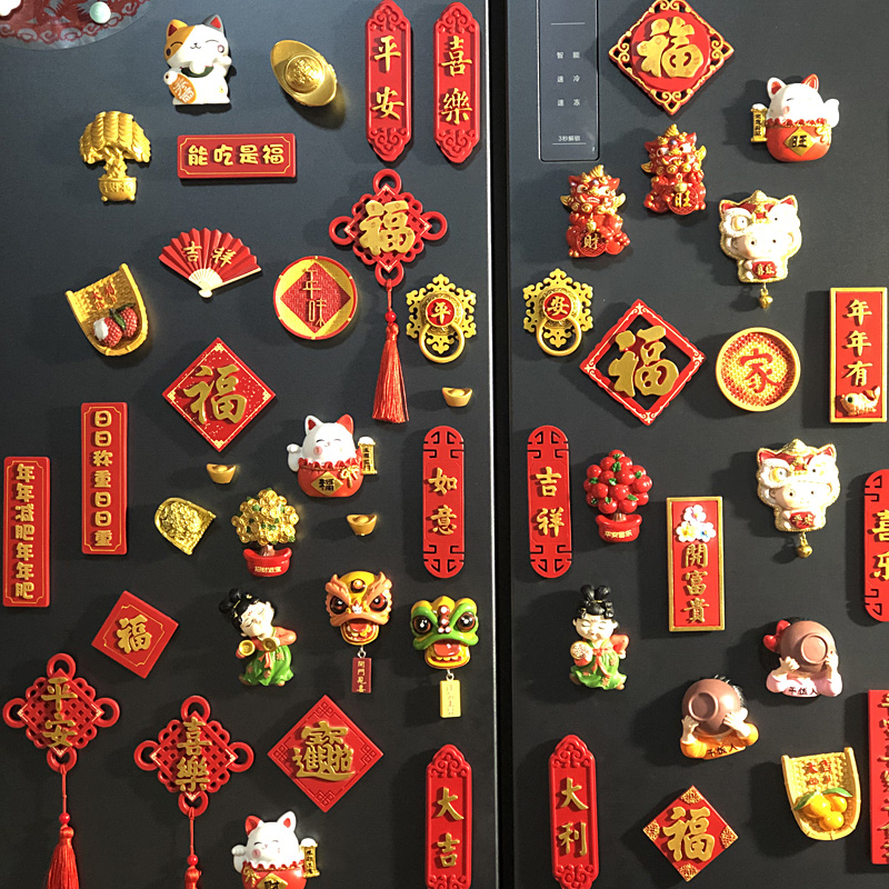 中国風冷蔵庫マグネット新年お祝い 3D 立体対句装飾ステッカー文化創造的な磁気マグネット