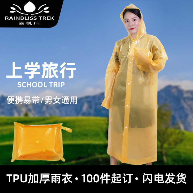 工場直接供給使い捨てレインコートポータブル旅行軽量ハイキングファッション pe 大人透明レインポンチョ在庫あり