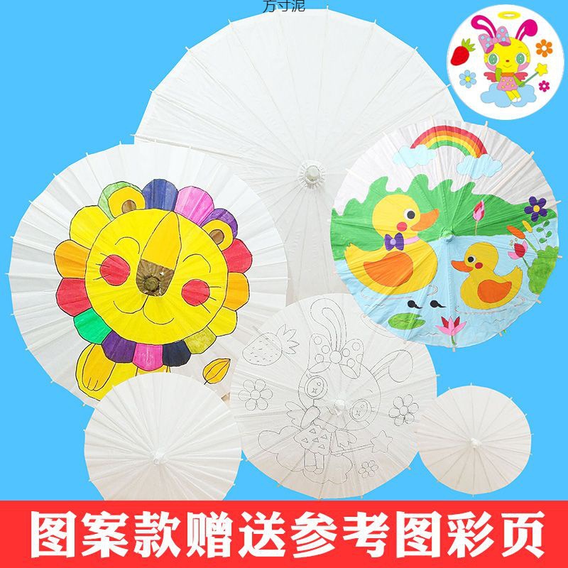 空白の子供の油紙の傘の絵画の傘の材料の手描きの落書きの色の道具の幼稚園の小さい傘の1件の卸売り