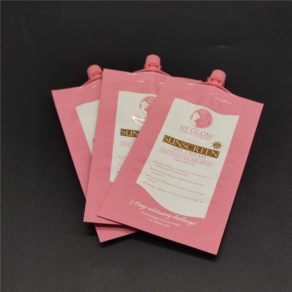 50ml日焼け止めクリーム看護液赤色キャップ吸口袋純アルミニウム複合カラー印刷包装袋三辺封吸口袋