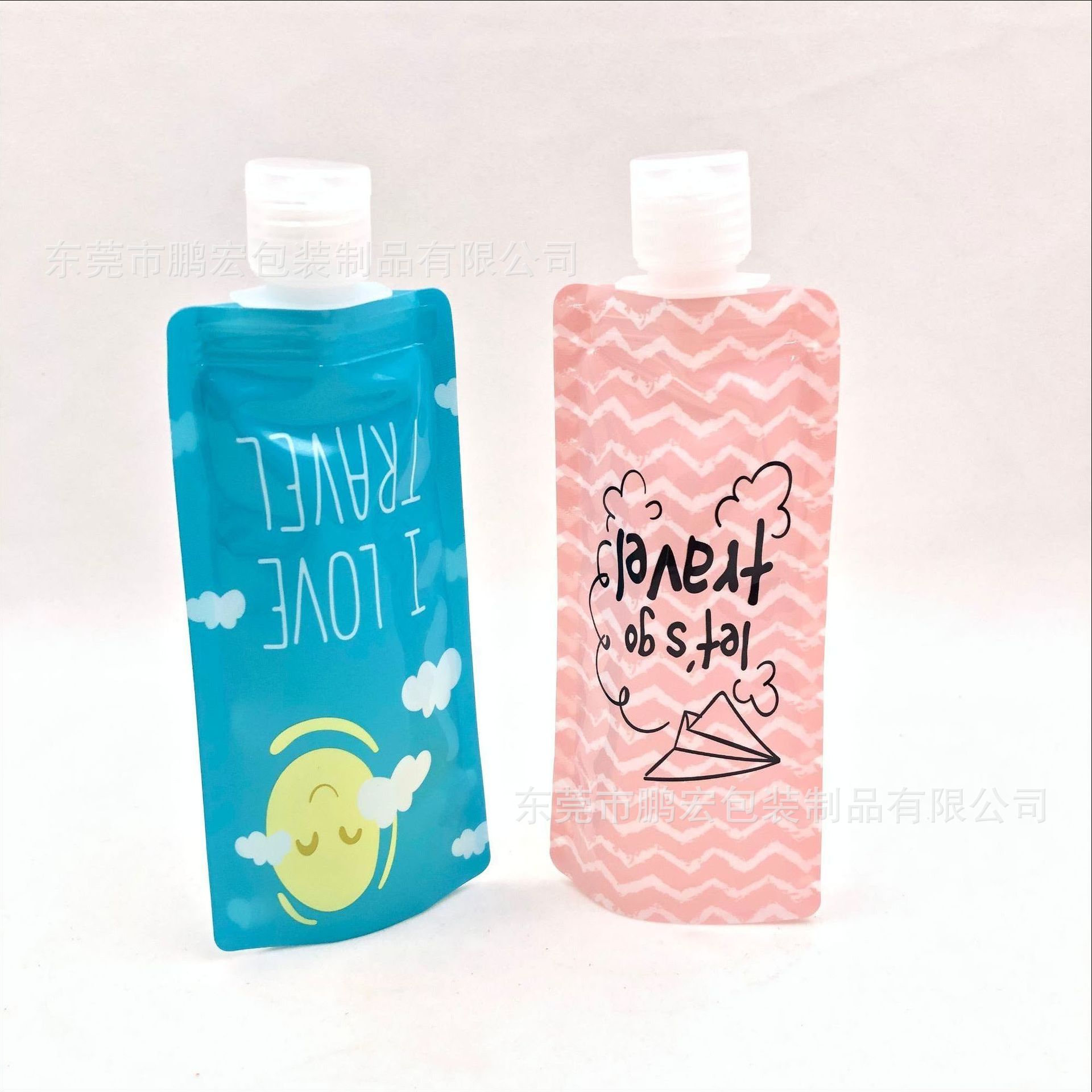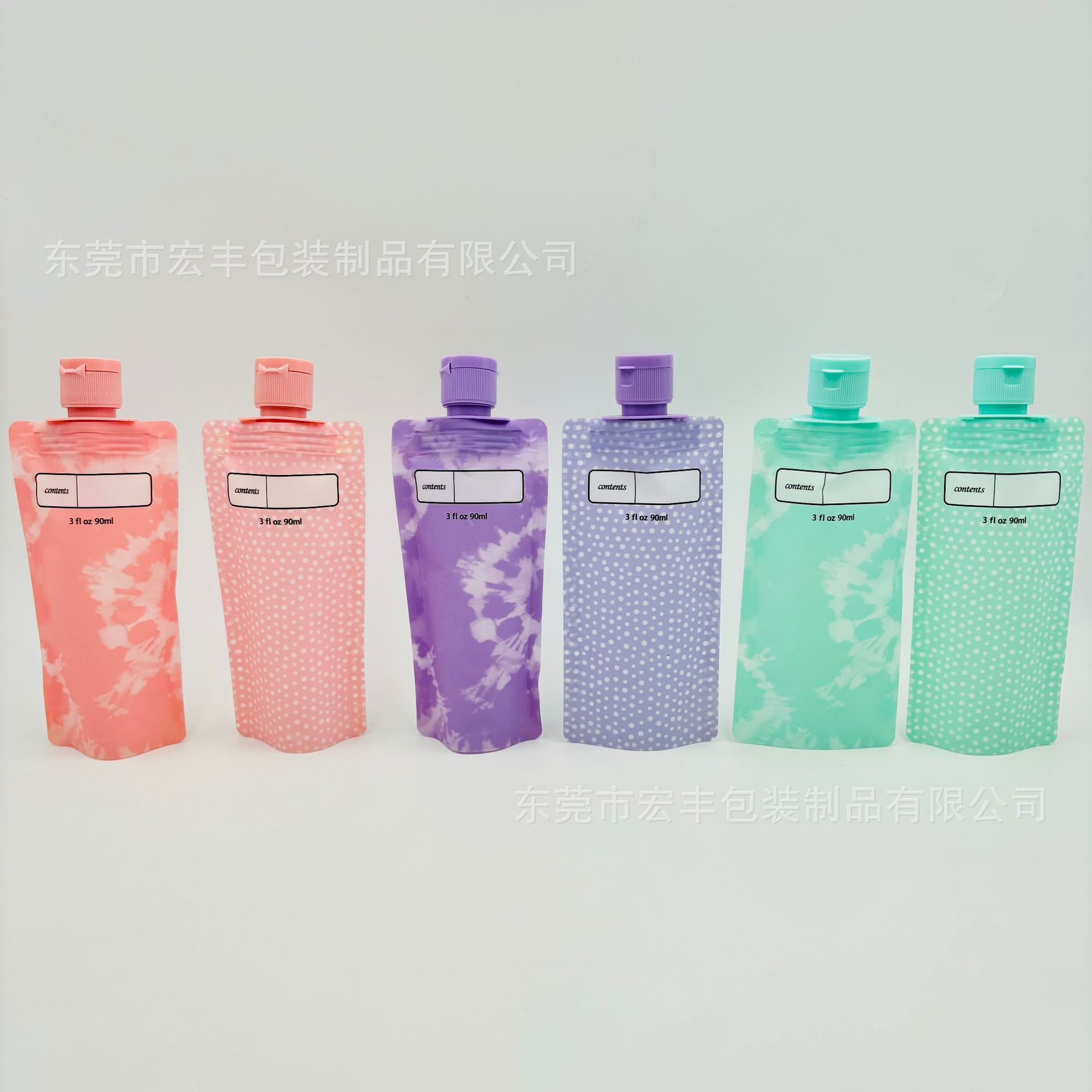 90ML化粧品詰め替え袋、液体エッセンシャルオイルフリップトップ自立ノズル袋、ポータブルトラベルローション詰め替え袋を供給します。