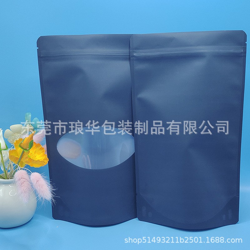 メーカーは現物三辺封黒色自立窓袋ナッツ食品茶葉自立窓密封袋を供給している