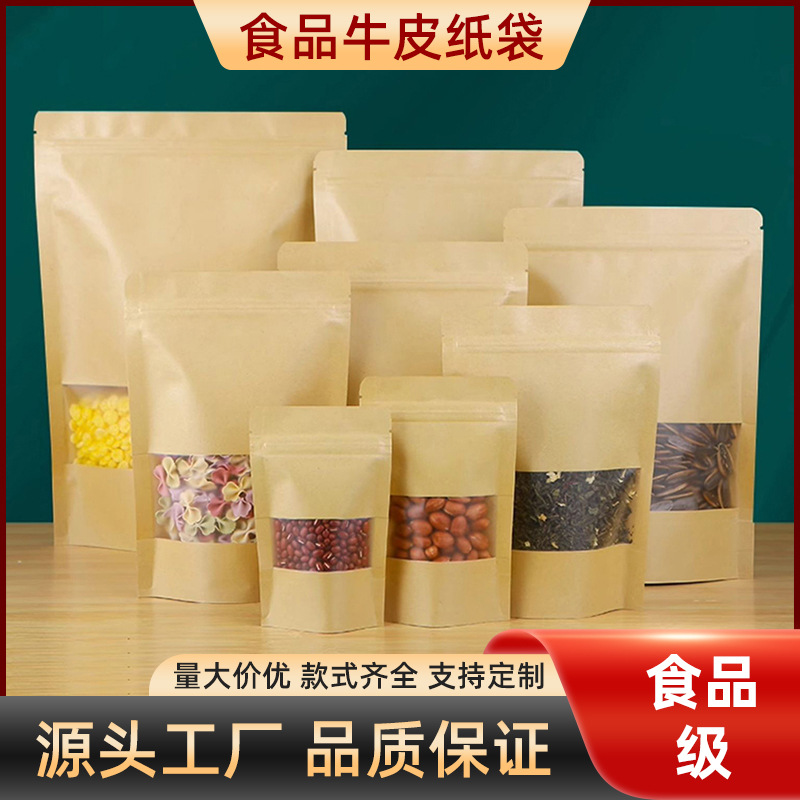 八辺封クラフト紙自封袋レジャースナック乾燥果食品包装袋密封自立窓クラフト紙袋