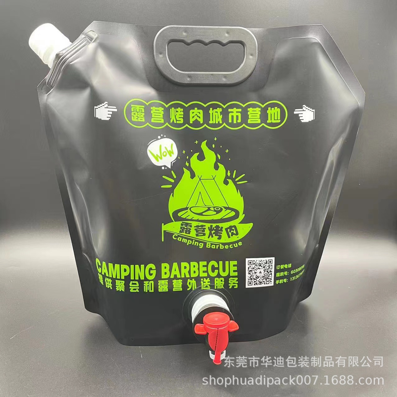 5kgダブル口出口テイクアウトキャンプ焼肉贮水包装袋3l6l蛇口パーティー黒手提げビール袋