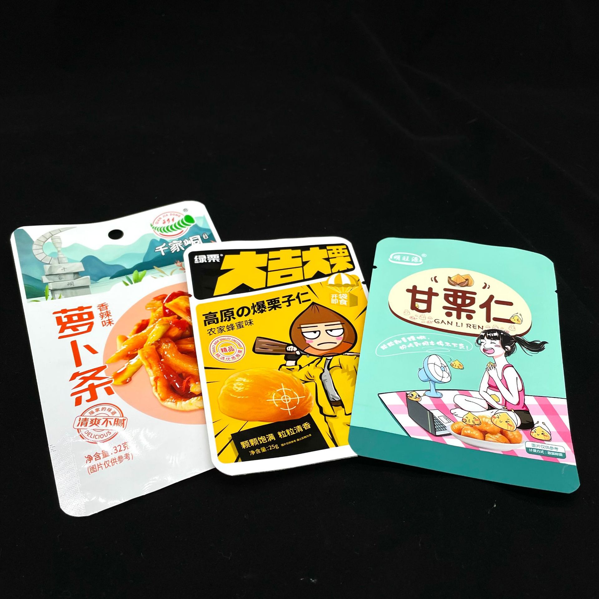 カスタマイズされた三方シールスナック食品包装袋、カラー印刷自立シール袋、破れやすいマットアルミ箔袋