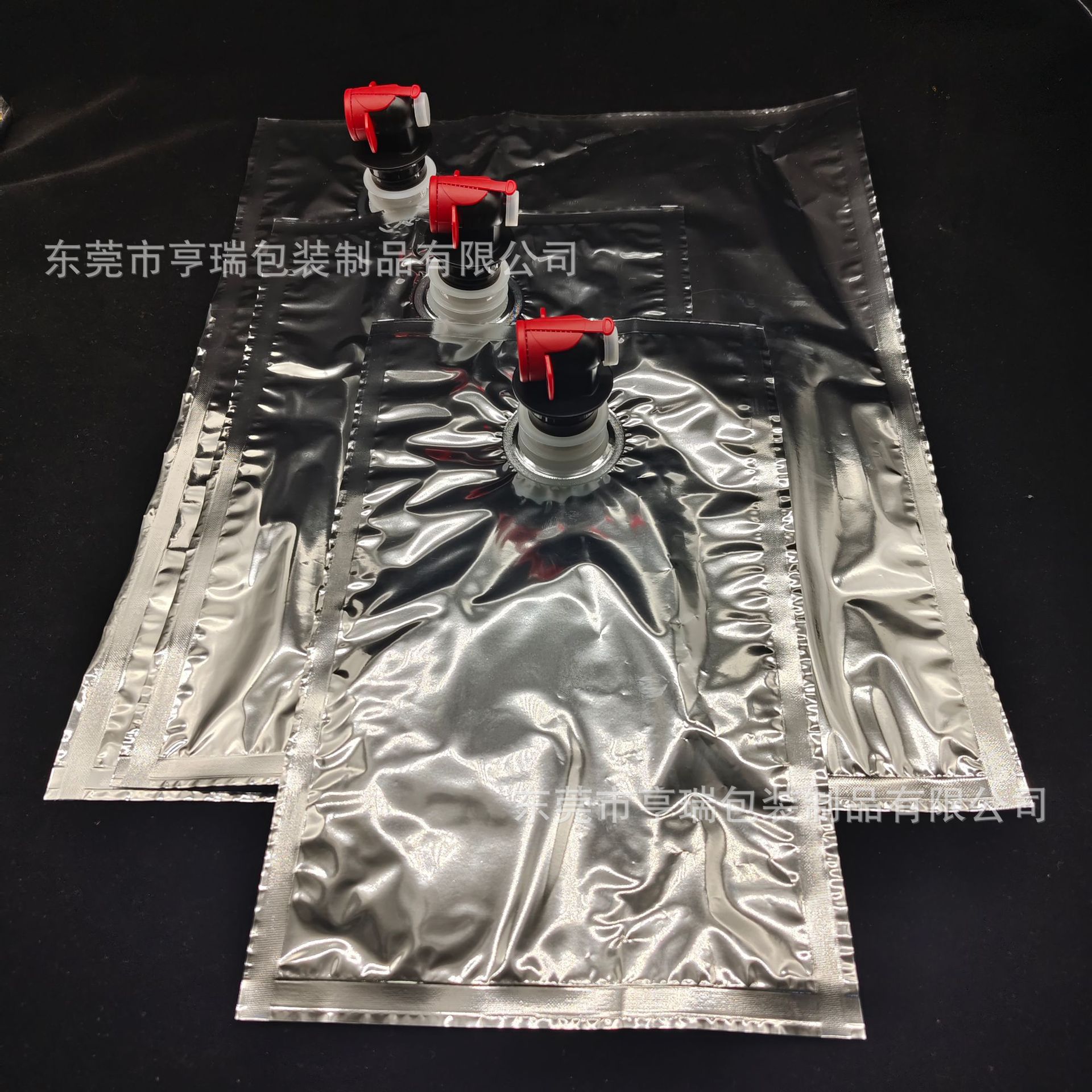 5Lバタフライバルブ付き赤ワイン包装袋、アルミ蒸着厚手素材、箱入り袋、液体用無菌高遮蔽防光袋