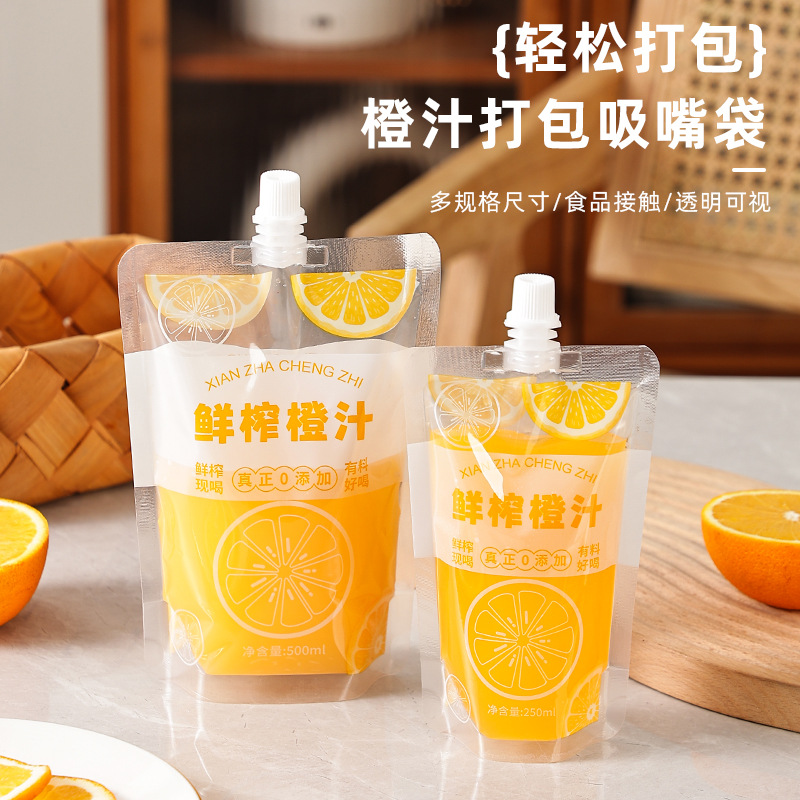 インターネット有名人の搾りたてオレンジジュースナイトマーケット屋台食品グレードの使い捨て増粘コールドドリンク商業ジュースノズル袋蓋付き