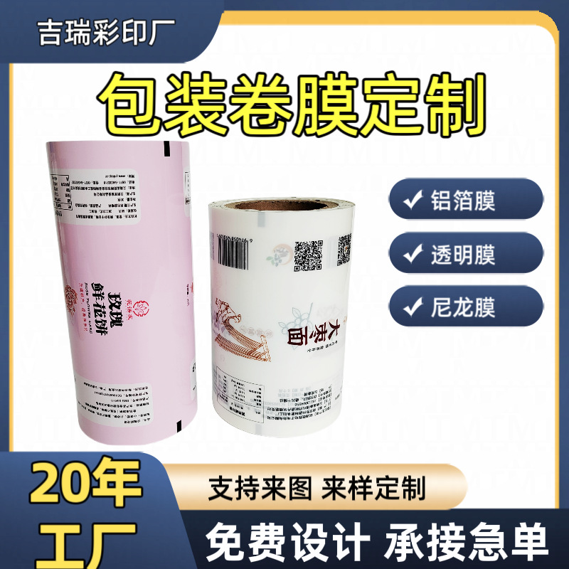 自動包装機専用ロールフィルムパターン文字印刷可能無料デザイン食品グレード素材複合フィルムロール