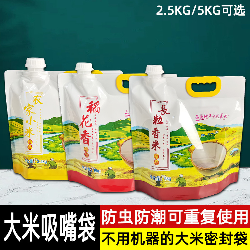 米吸口袋手提げ食品級密封農家小米袋五穀雑穀袋大口径吸口米袋