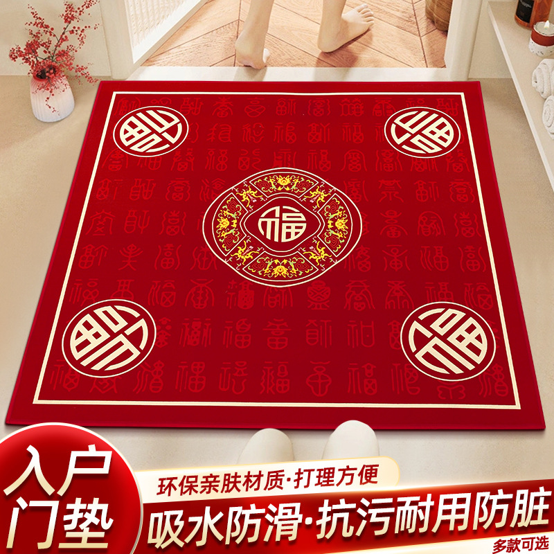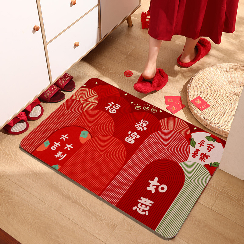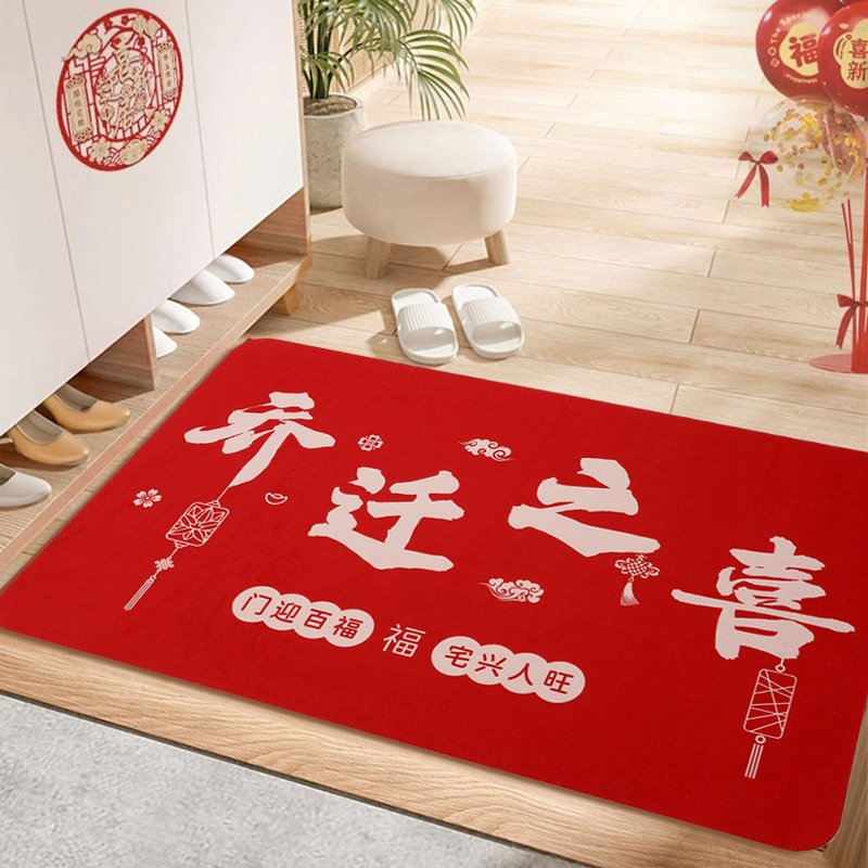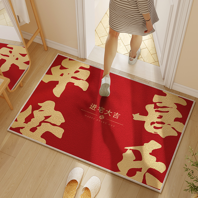 喬迁の喜門の玄関マット玄関マット家庭用赤いじゅうたん寝室トイレ滑り止めマット