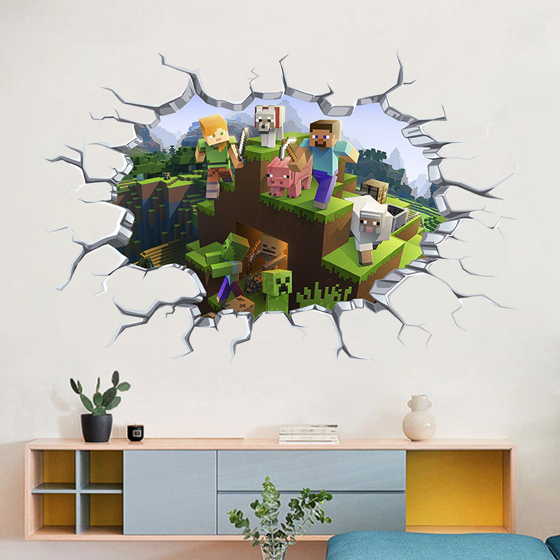 マインクラフトrun away3Dウォールステッカー子供部屋装飾ウォールステッカー私の世界PVCステッカー自己接着