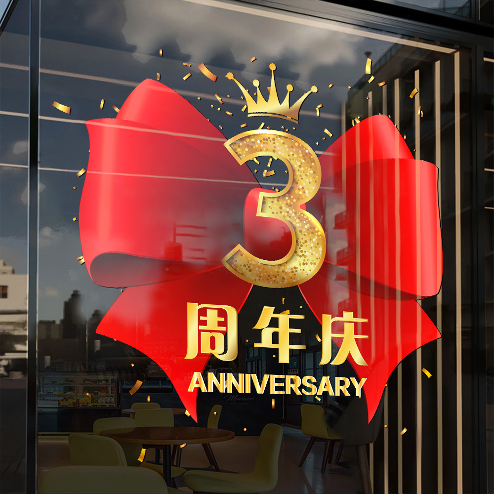 周年店店慶装飾配置イベント雰囲気ショーウインドーシールガラス扉貼り画周年慶ガラス窓花
