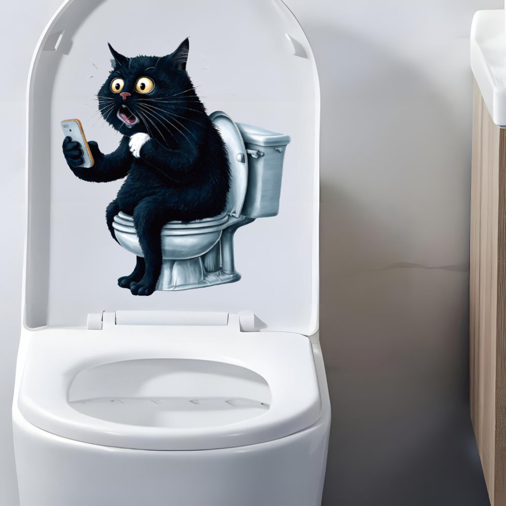 国境を越えた人気の漫画猫バスルームトイレステッカー壁ステッカー装飾 PVC 自己粘着トイレステッカー浴室の装飾