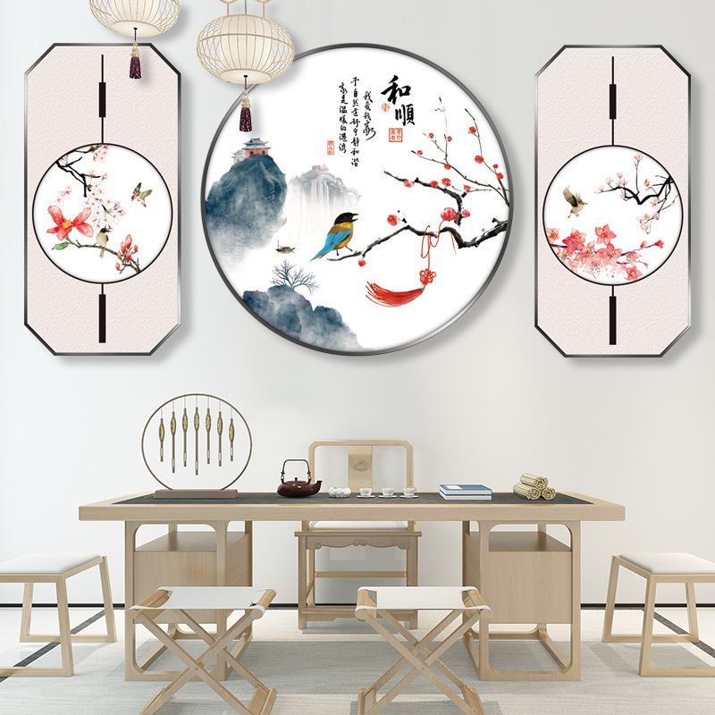 水墨風の家の壁画の部屋の背景の壁の装飾は絵を貼ります。