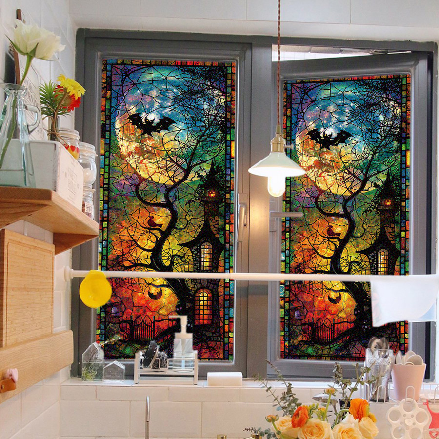 城コウモリハロウィーン装飾シール静電気ガラス貼りゴムなし窓貼りシームレスステッチガラス窓