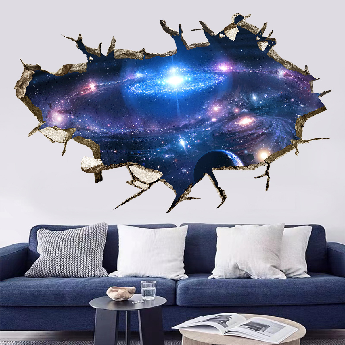 国境を越えた3D壁を越えた星空月銀河惑星空青空壁貼りは壁貼り客間天井シールを取り除くことができる