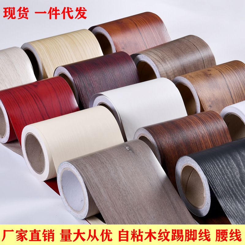 木目調接着剤不使用の巾木ステッカー自己粘着リビングルームウエストライン装飾ストリップ窓枠防水耐油ステッカー取り付けが簡単