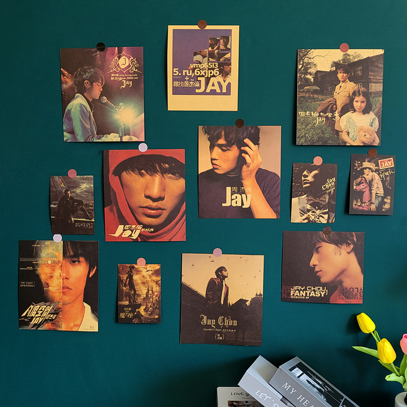 周杰伦ポスターins復古風壁貼り部屋壁面装飾寝室背景シール写真壁