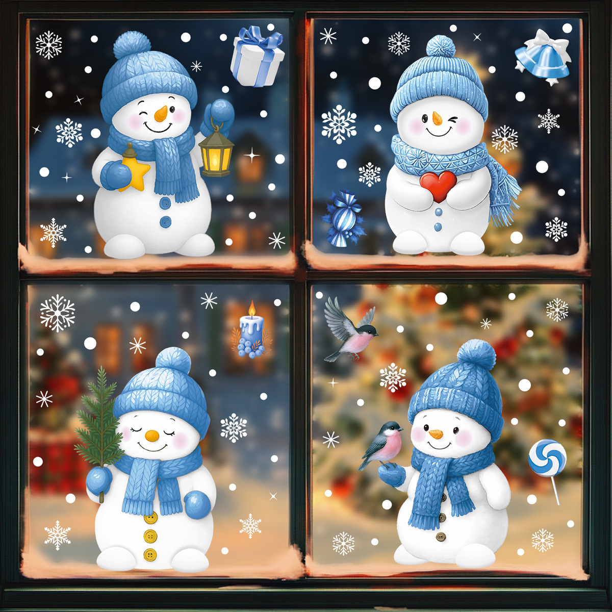 クリスマスステッカーキャンディスノーフレーク静電ステッカーショッピングモールウィンドウシーンレイアウトギフトボックス雪だるま静電ステッカー卸売