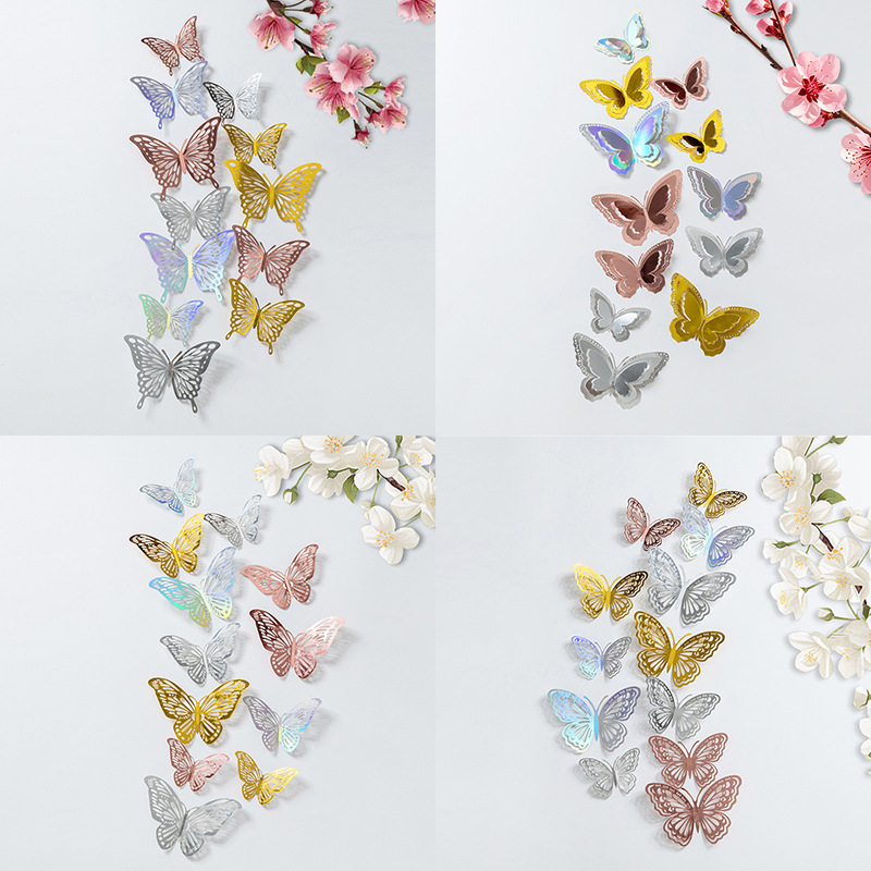 3D 立体蝶紙ラテアート結婚式結婚式寝室リビングルーム装飾レイアウト誕生日パーティーストリング壁掛け