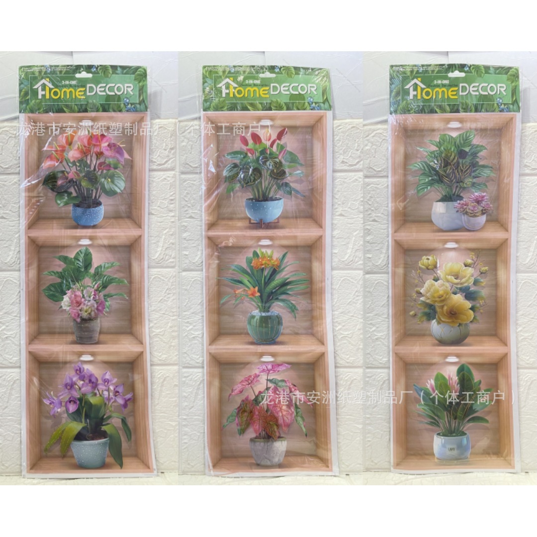 三連のシミュレーション植物の鉢植えの壁はシリーズの立体的な手作りの層を貼って客間の装飾のフォトフレームの花瓶を貼ります。