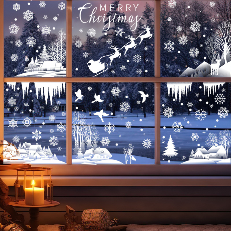 白い雪屋クリスマスシールクリスマス装飾窓ガラス静電気貼り絵クリスマスツリー雪景色雪窓貼り