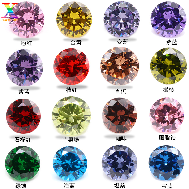 梧州宝石卸売り5a宝青リンゴ緑海蘭色ジルコン0.9-12mm貴色円形宝石裸石