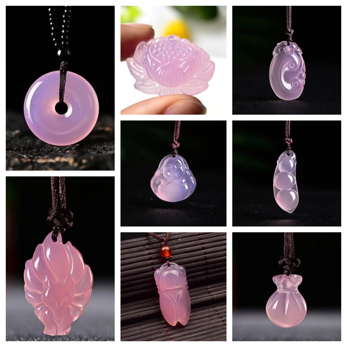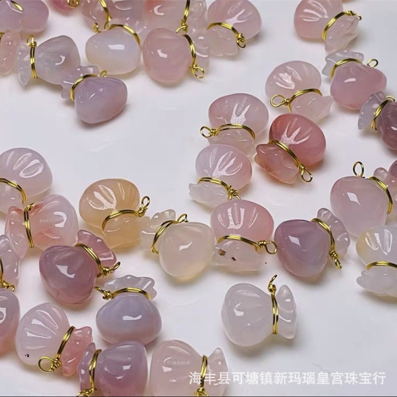 批发天然巴西玛瑙冰种粉玉髓葫芦钱袋吊坠玉石佛水滴狐狸挂件玉坠