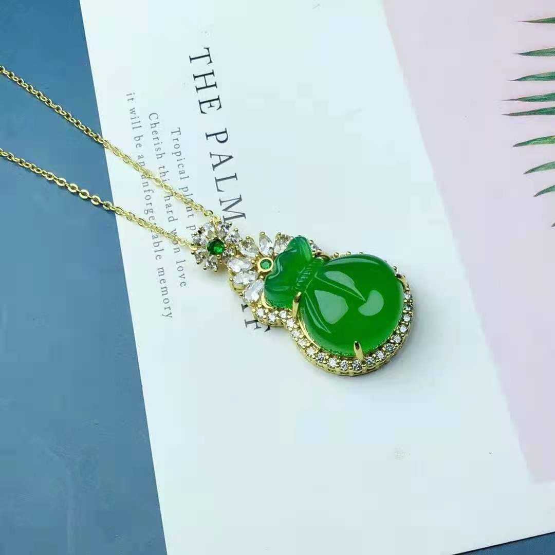 メーカー卸売ハイアイスカルセドニーマグノリアペンダント白瑪瑙ひょうたんマネーバッグペンダントレディースウォータードロップ翡翠ネックレス
