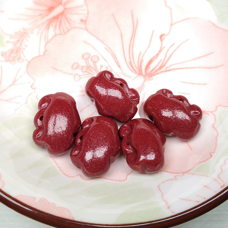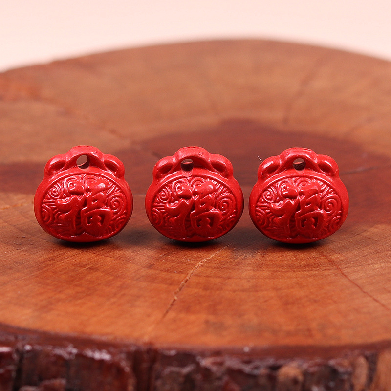 96% 高含有量天然原鉱真朱砂福字ミニ小銭袋部品手串足鎖飾りが使える