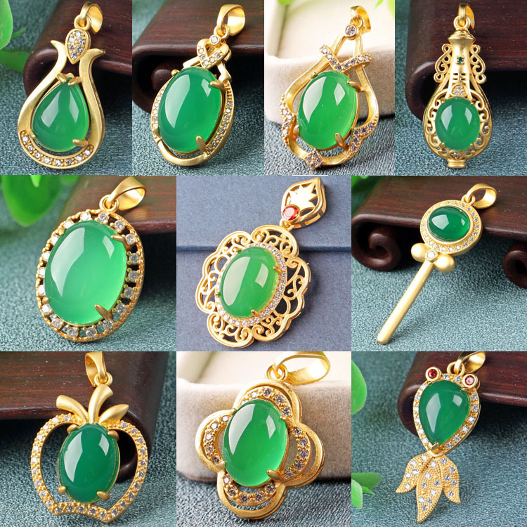 古法金ペンダント緑玉髄女性式ペンダント女性の気質水滴金色モザイク鎖骨ネックレスアクセサリー