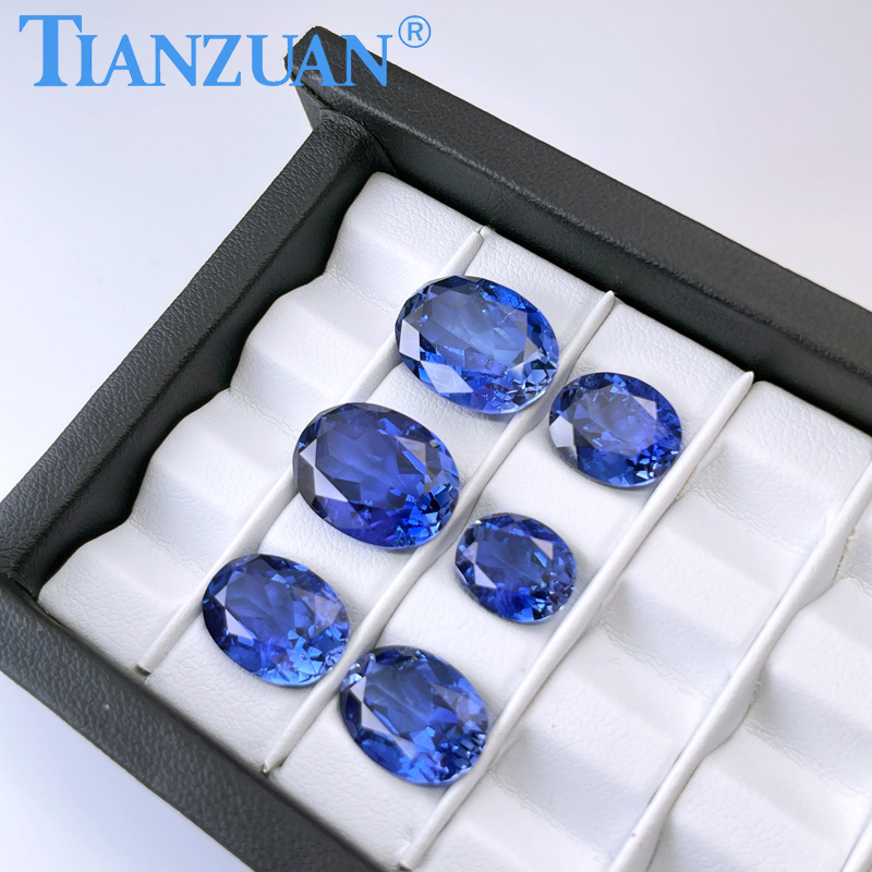浅青矢車菊青人工育成合成宝石綿付き楕円形卵形天然切断面裸石