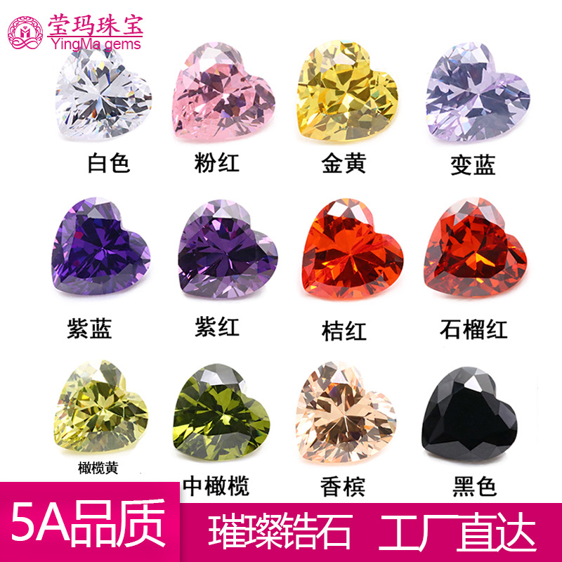 工场卸売5aホワイトカラーハート型ジルコンハート型人工宝石皓石czジルコン裸石卸売