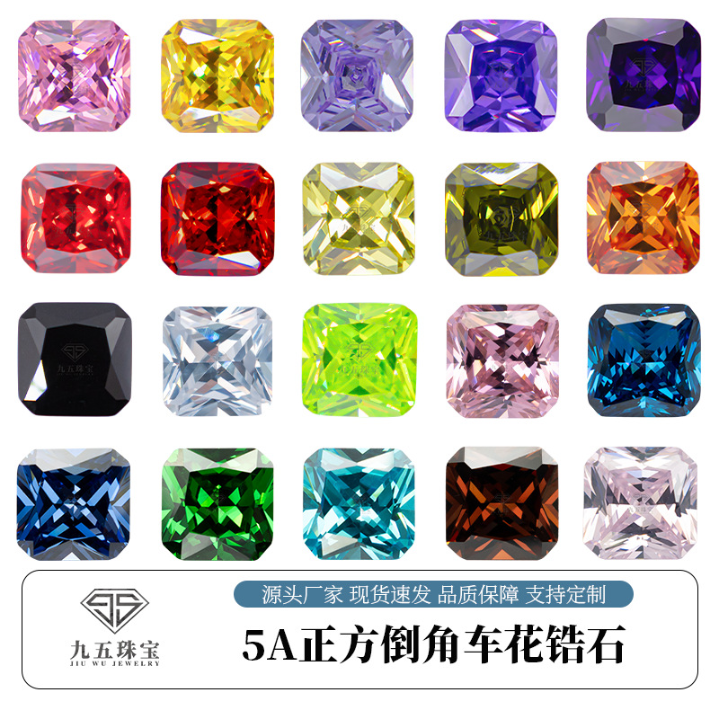 5A正方形倒角加工裸石梧州人造宝石卸売カラージルコニアCZリング面石ジュエリーメインストーン