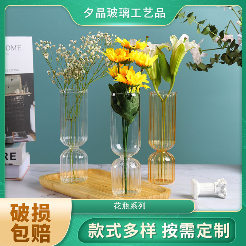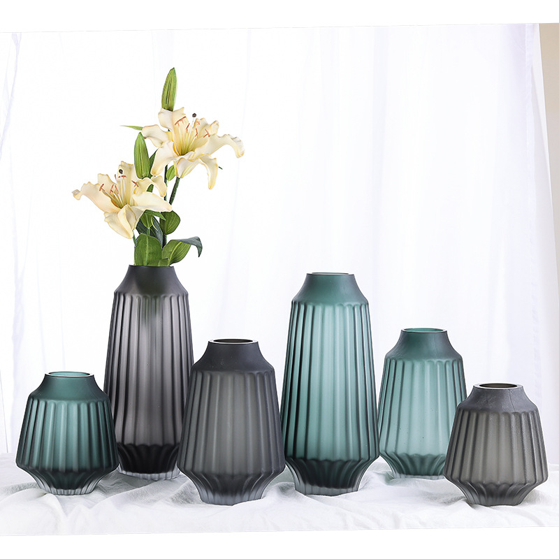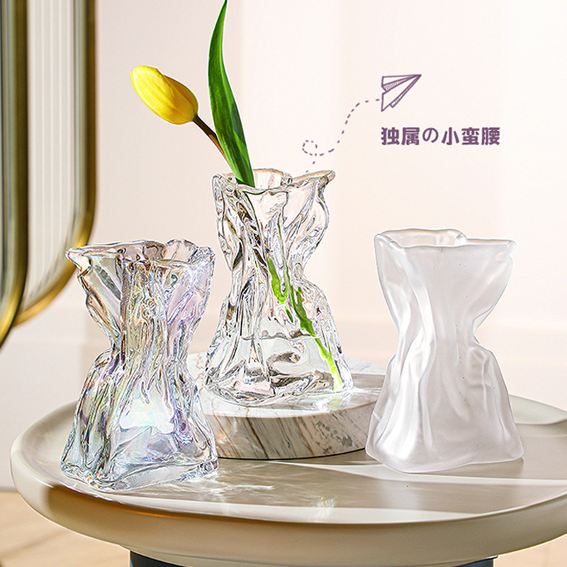 ガラス花瓶ins風高颜値クリエイティブ折り紙しわ水養薔薇チューリップ生け花器置物卸売り