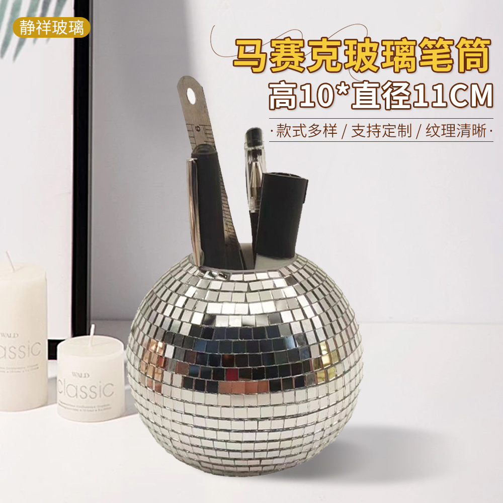 モザイクガラス筆筒置物ディスコボール誕生日クリスマス装飾学生寮クリエイティブ筆筒