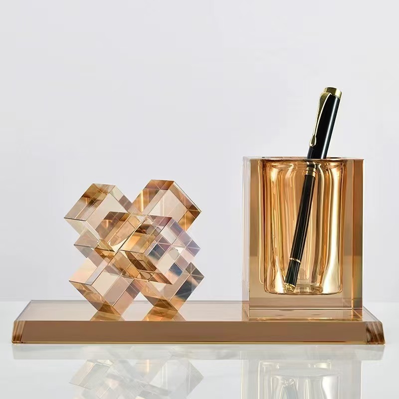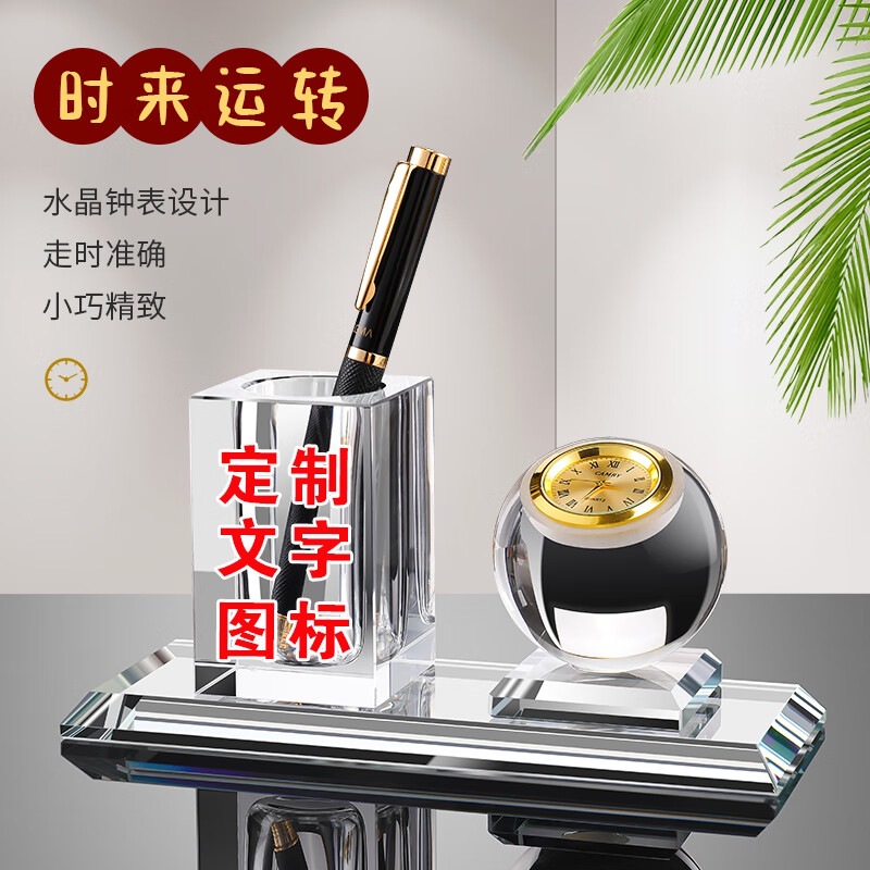 水晶筆筒三点セットビジネスプレゼント置物創意実用事務プレゼント注文記念彫刻品