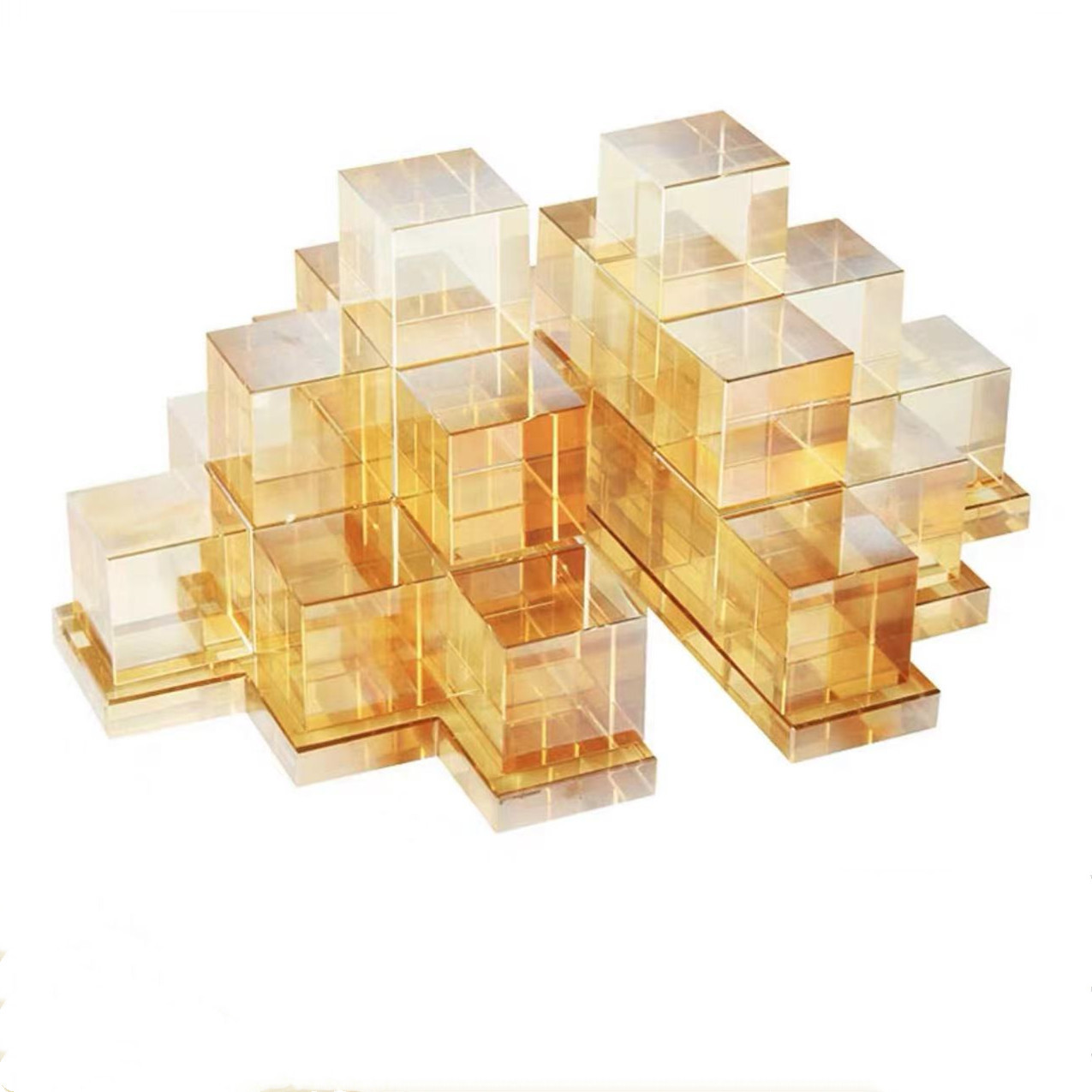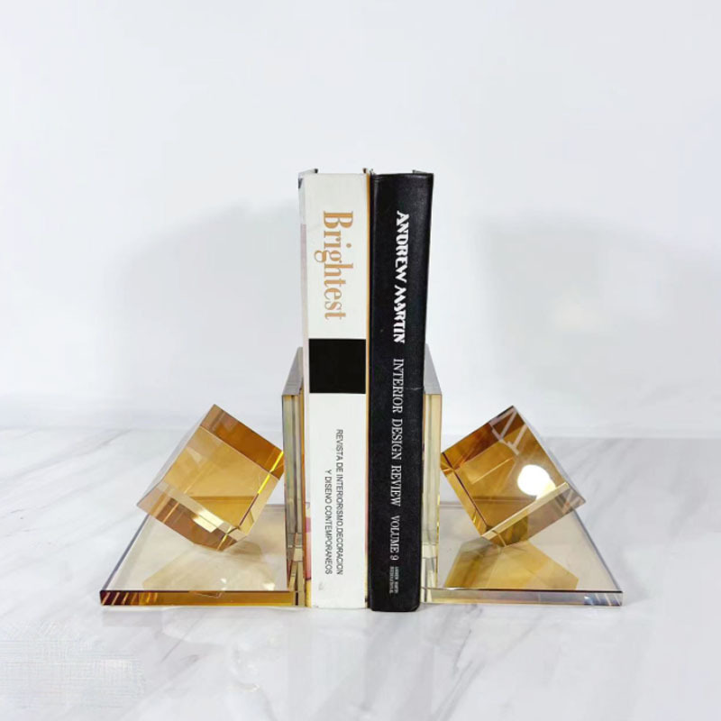 現代のシンプルな琥珀色の積み木水晶書は本棚の本棚の書斎に本を置いてアイデアを飾って芸術品を飾ります。