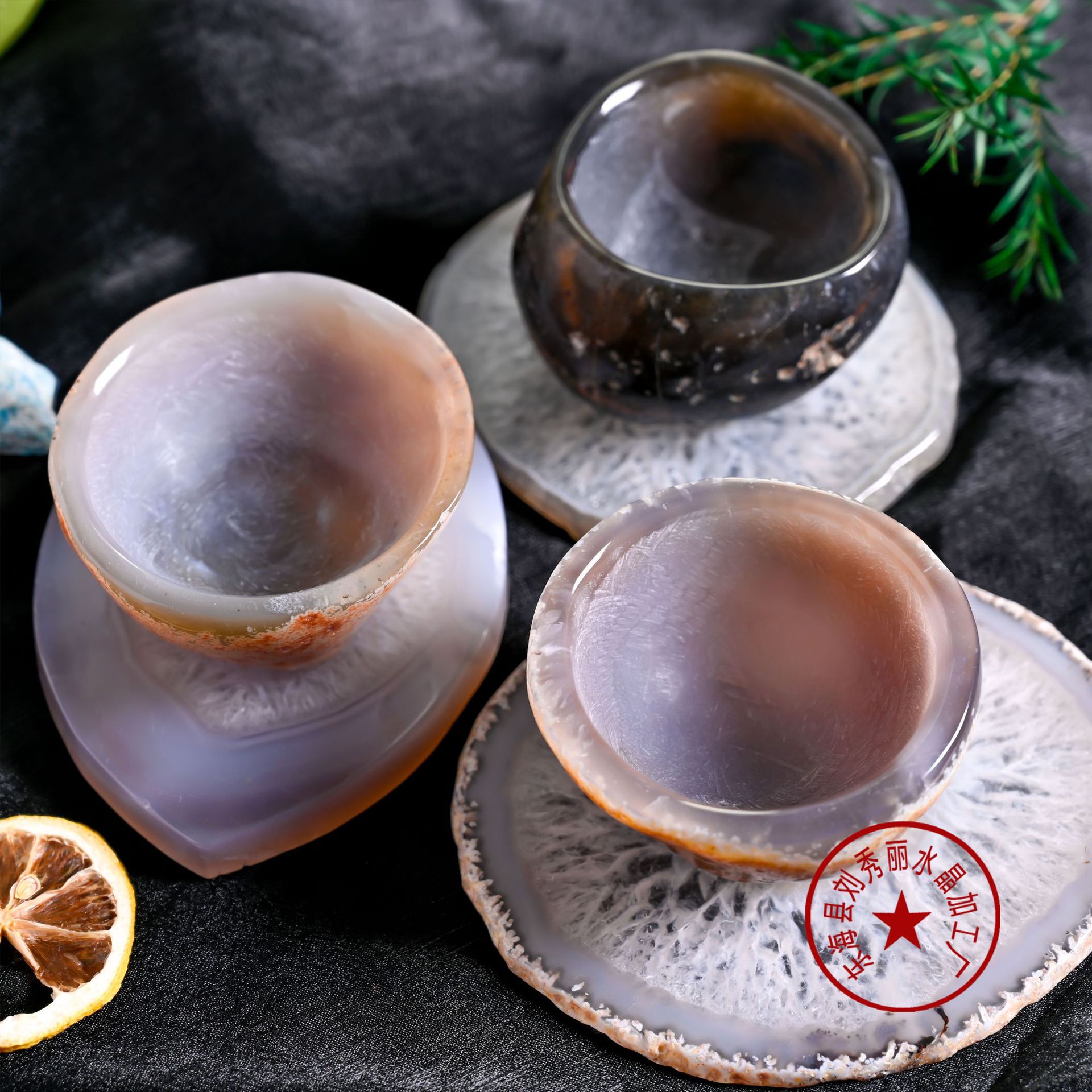 天然瑪瑙碗収納碗原石磨きデスクトップ灰皿置物茶卓装飾消磁筆洗鎮紙