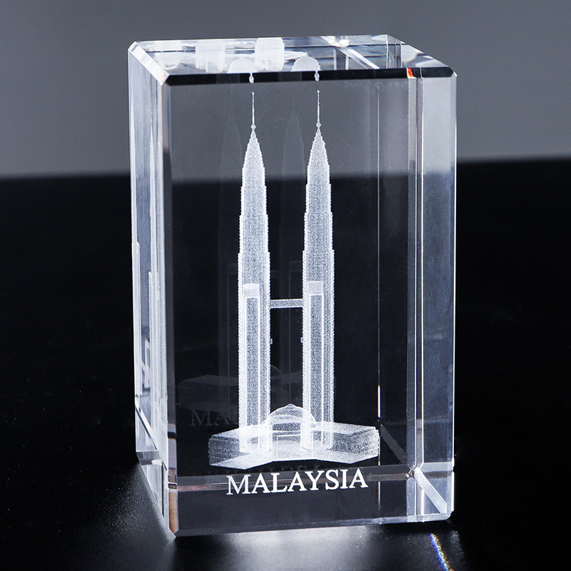小橋水晶鎮紙ツインタワーマレーシア風景観光記念品水晶内彫刻工芸品置物